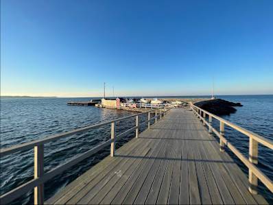 Små fartygsharbor med sauna. Toilettar och vatten kan hittas på jorden väster om parkeringen.