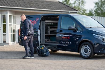 Puhelinvaihto on 702 287 778 ja verkkosivusto on seesafe.dk.